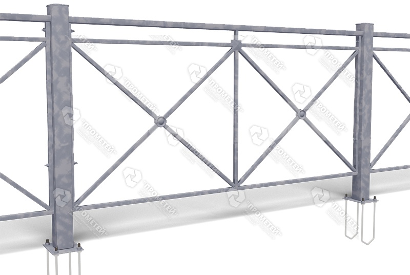 Пешеходное ограждение типа Крест используется для отделения участков, предназначенных для передвижения людей, и проезжей части. Это максимально популярная модель перильного типа в России. В ней сочетается надежность, эстетичность, практичность и большой срок эксплуатации. Конструкция пешеходного ограждения Крест ПО 1 состоит из секций, столбов и крепежей.